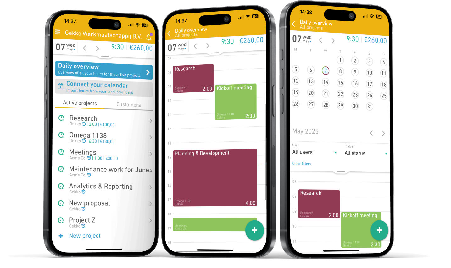 If you like so many enterpreneurs are glued to your mobile, Gekko has got the app for you. Whether you need to create invoices, want to scan receipts, keep track of hours or trips, we've got you covered. Just download any and all of the Gekko apps from the appstore.
